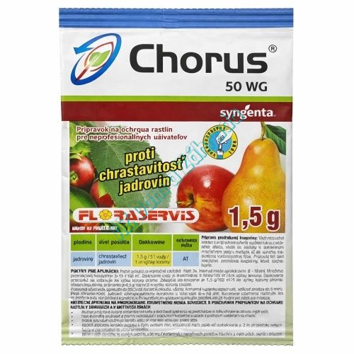 Chorus 50 WG je moderný fungicíd na ochranu jadrovín a viniča, ktorý účinne bojuje proti chrastavitosti, múčnatke, plesni sivej a ďalším hubovým chorobám. Obsahuje cyprodinil, ktorý blokuje vývoj patogénov v rastlinách už pri prvých štádiách napadnutia. Vďaka rýchlej absorpcii (už do 2 hodín) a odolnosti voči dažďu poskytuje spoľahlivú preventívnu aj liečebnú ochranu.