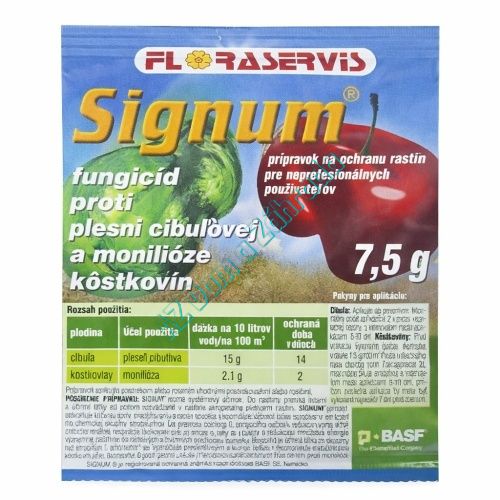 Signum je moderný fungicíd určený na ochranu ovocia, zeleniny, okrasných a špeciálnych plodín proti širokému spektru hubových chorôb. Kombinácia dvoch účinných látok – boscalid a pyraclostrobín – zaručuje nielen výnimočnú účinnosť, ale aj pozitívny vplyv na kvalitu a množstvo úrody. Vhodný aj do integrovanej produkcie.