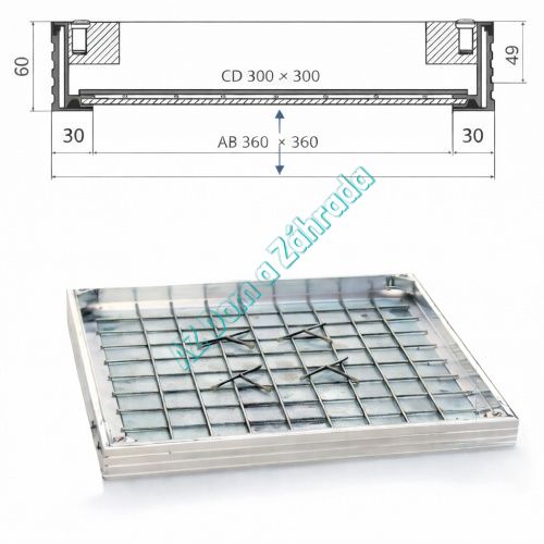 Hliníkový poklop pre zadláždenie H60 – 300 × 300 mm