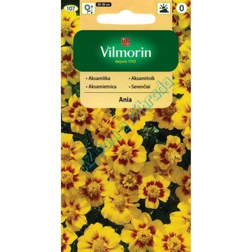 Aksamietnica jednoduchá ANIA je nenáročná jednoročná rastlina s výškou 20–30 cm, ideálna na výsadbu nízkych okrajov, záhonov, balkónových truhlíkov aj kvetinových kompozícií. Vyznačuje sa jednoduchými (single) kvetmi v medovo žltej farbe s výraznou čerešňovo-karmínovou škvrnou v strede, ktoré pôsobia prirodzene a veľmi dekoratívne.