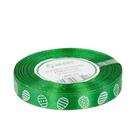 Stuha saténová zelená s vajíčkami 1,2 cm / 23 m