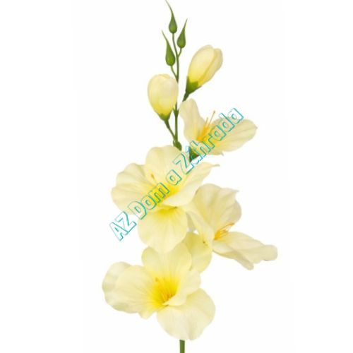 Elegantná umelá gladióla v krémo žltej farbe so saténovým povrchom je ideálnym doplnkom pre aranžovanie kytíc, vencov, interiérových či pietnych dekorácií. Vďaka kvalitnému spracovaniu pôsobí realisticky a zachová si svoju krásu po dlhý čas bez potreby špeciálnej starostlivosti. Hodí sa na svadobné, slávnostné aj cintorínske ozdoby.