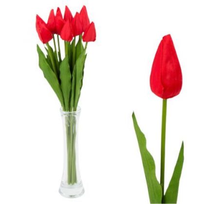 Umelé tulipány sú veľmi obľúbenou celoročnou dekoráciou na jedálenský stôl či konferenčný stolík v obývacej izbe. Tulipány sa dajú skvele kombinovať a jednoducho zladiť so zvyškom interiéru. Tulipán má celkovú výšku 55 cm a má navyše v stonke drôtik, vďaka ktorému sú ešte lepšie ohybné a tvárne. Môžete tak ľahko vytvárať kvetinové aranžmány alebo môžu byť krásnou veľkonočnou dekoráciou.