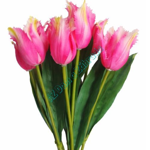 Umelá kytica tulipánov v ružovej farbe dodá vášmu interiéru prirodzený vzhľad. S výškou 40 cm je ideálna na ozdobu vyšších váz, svadobných aranžmánov alebo ako doplnok do akéhokoľvek priestoru.