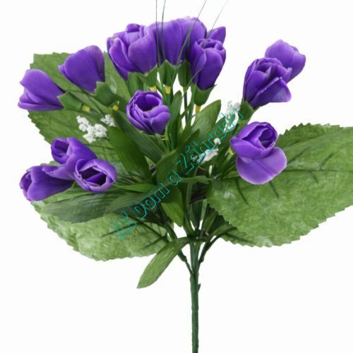 Umelá kytička fialová s krokusov, trávičky a gypsomilky má výšku 25 cm. Kvety sú vyrobené z hodvábnej textílie. Počet  hlavičiek kvietkov je 15 cm s priemerom 3 cm.