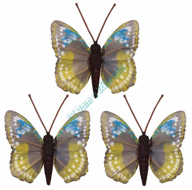 Motýlik hnedo-modro-zelený so štipcom 4,5 x 4,5 cm/ 3 ks