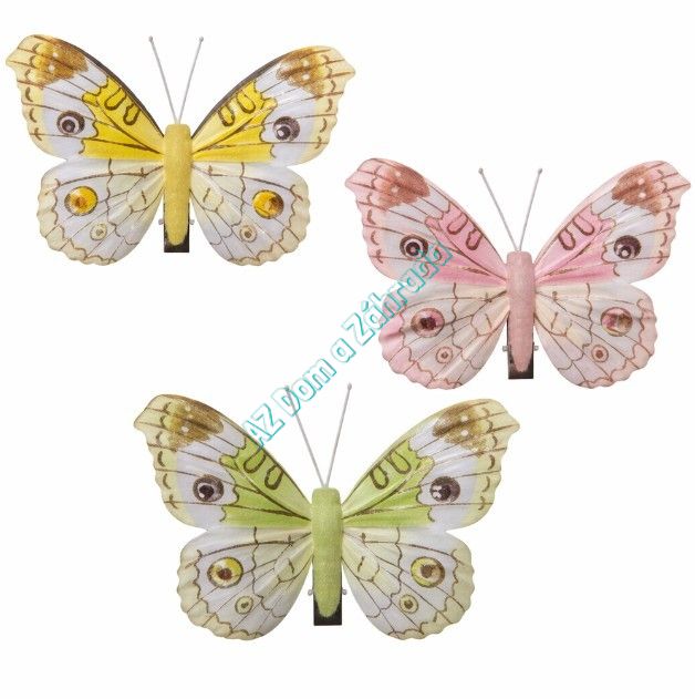 Motýlik žltý, zelený, ružový so štipcom mix 6 x 7 cm / 3 ks
