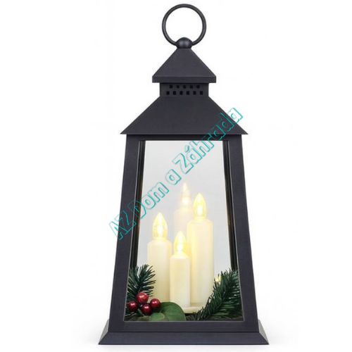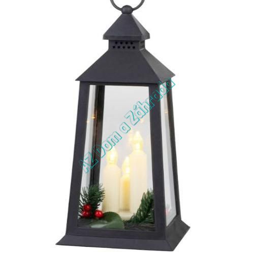 Dekoráciu dopĺňa vianočná zeleň s červenými bobuľkami, ktorá umocňuje sviatočný vzhľad lampáša.