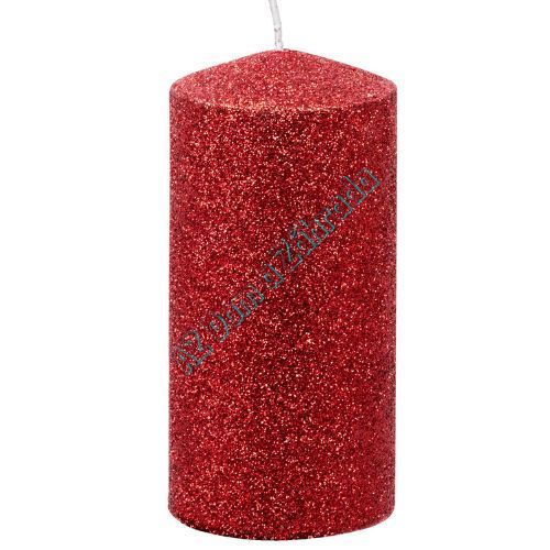 Sviečka MagicHome Vianoce, 5,5 x 12 cm, červená s glitrami