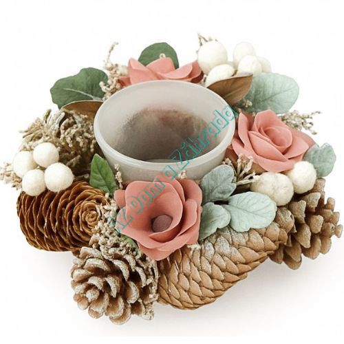 Vianočný svietnik na jednu sviečku s prírodnými dekoráciami.