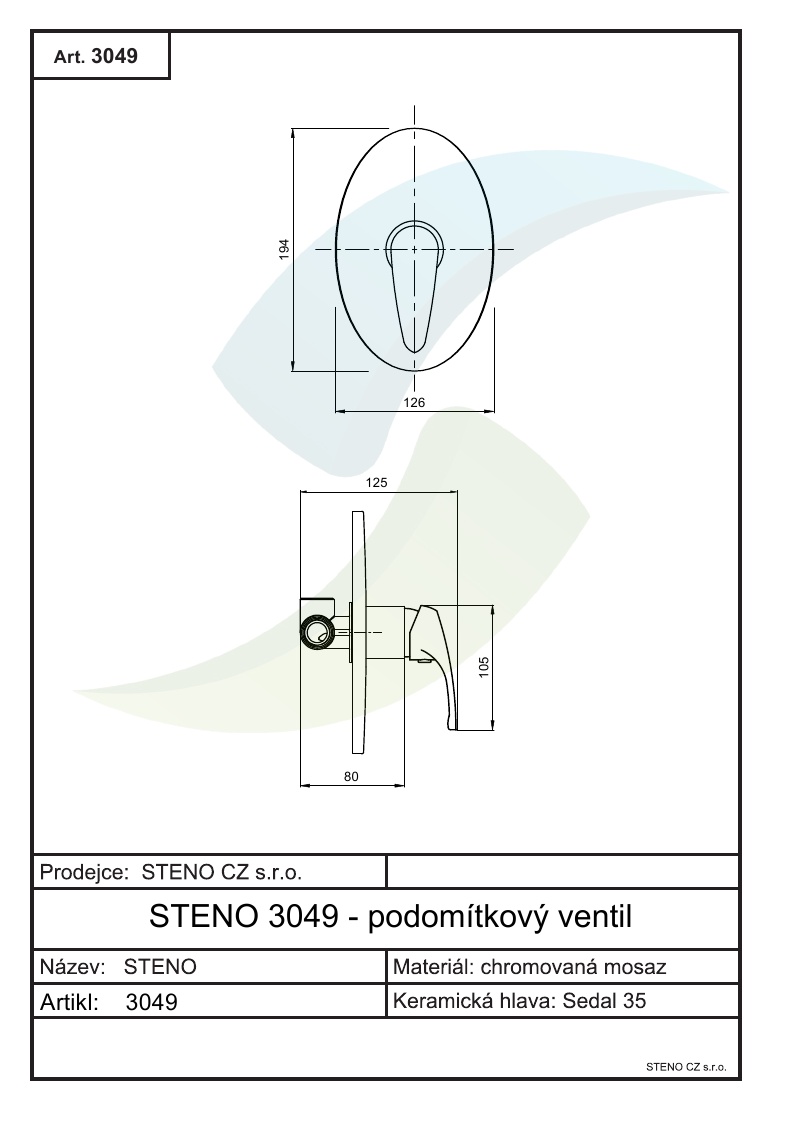 Pákový vodovodný podomietkový ventil STENO 3049 lesklý chróm, španielska keramická kartuša SEDAL priemer 35 mm. Pripojenie 1/2 ". Za málo peňazí klasika, ktorá Vás nesklame.
